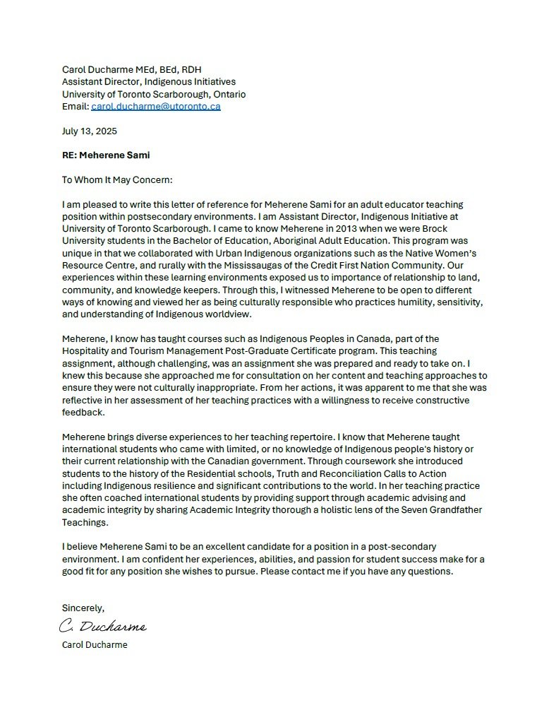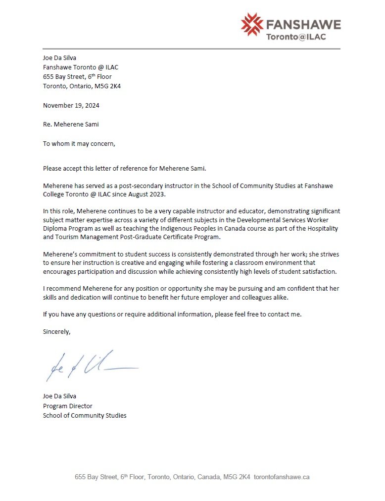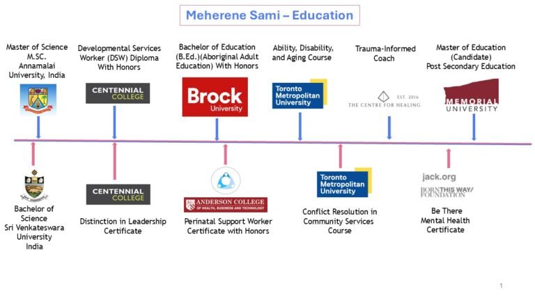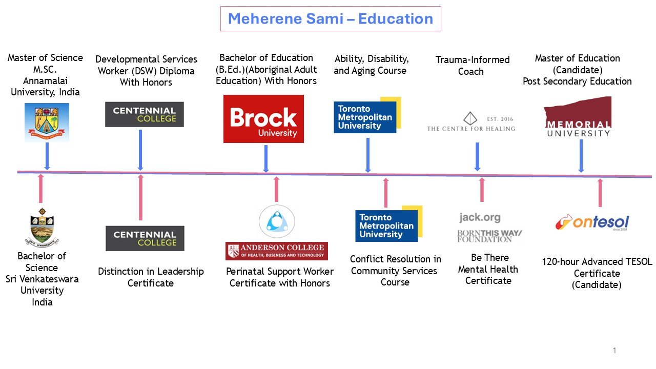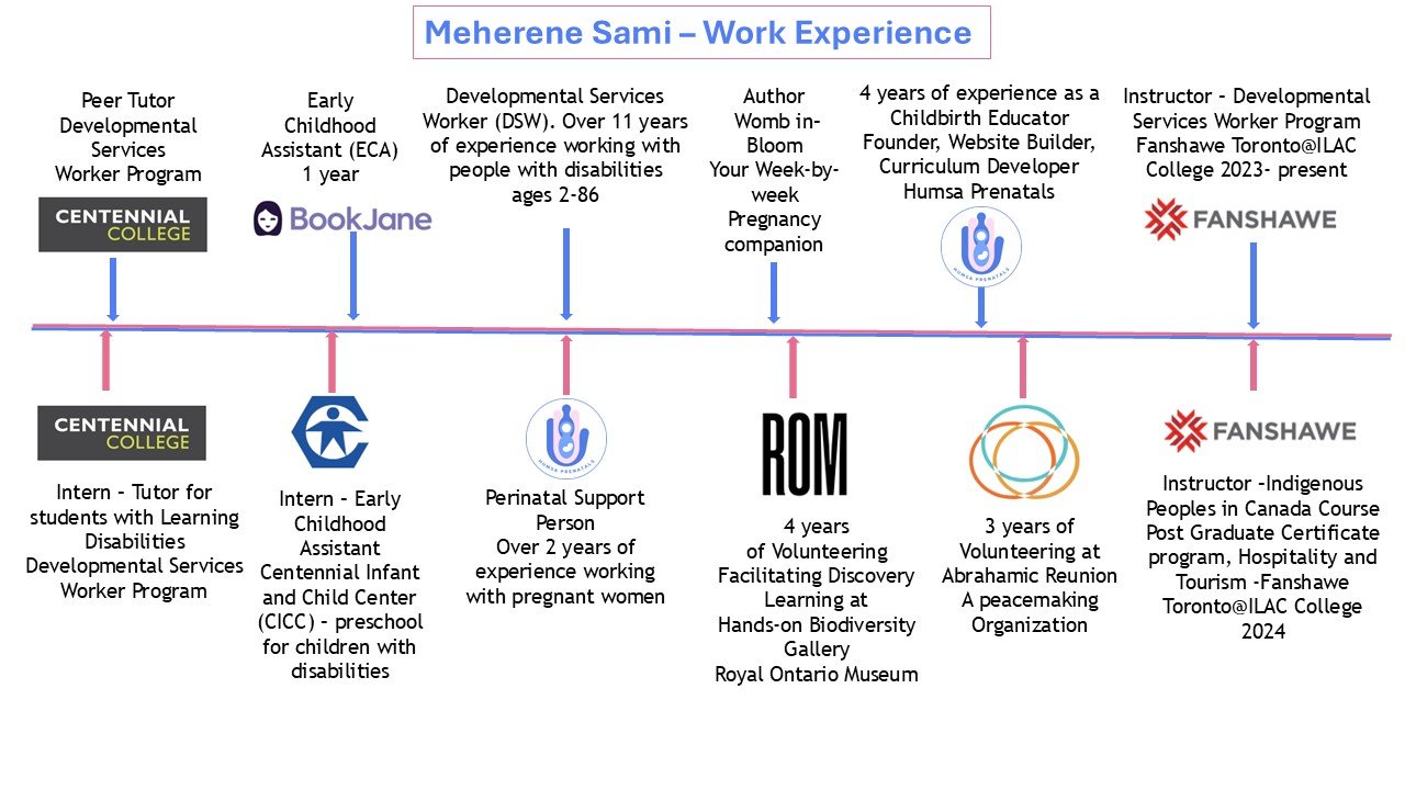 I am Meherene Sami. I am an adult educator, curriculum developer, and the creator and founder of Humsa Prenatals. I have experience working as a college instructor in the Disability field and the Indigenous sector at Fanshawe Toronto@ ILAC College, teaching nearly 250 international students each term. In my 11 years of experience working in the disability field, I supported people with a wide range of disabilities, including Cerebral Palsy, Acquired Brain Injury, Down syndrome, and Autism. I have experience working with people of different abilities, races, and ages (0 to 87). I am a lifelong learner currently studying a Master of Education (Post Secondary Education) at Memorial University. People describe me as a warm, gentle, yet strong mentor who directs students toward a compassionate, empathetic course of action. I love exploring the outdoors and dabbling in Sufi music in my free time.